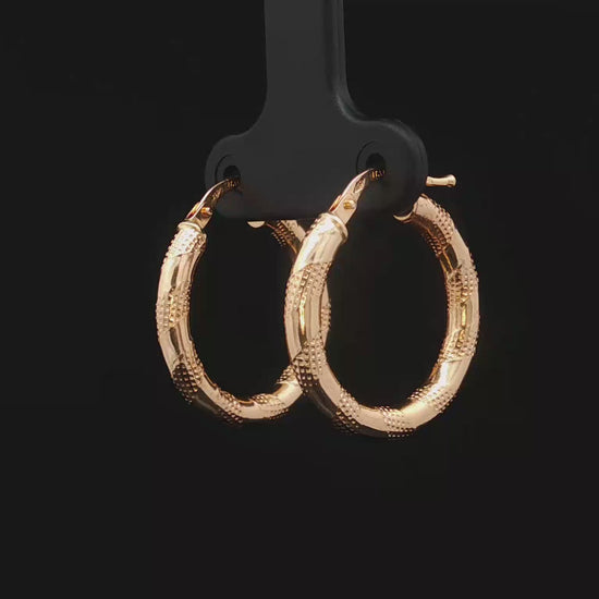 Luce un estilo radiante con estos sofisticados pendientes de aro en oro. Su diseño clásico y elegante los convierte en el accesorio perfecto para complementar cualquier atuendo, desde un look casual hasta un evento especial. Fabricados con materiales de alta calidad, estos pendientes te brindarán comodidad y durabilidad.