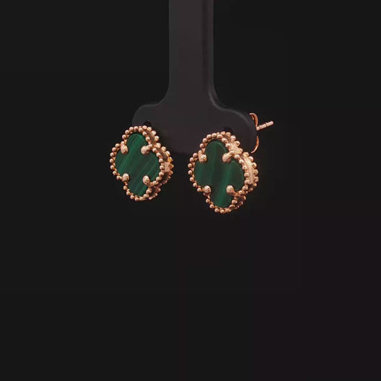 Luce una elegancia atemporal con estos exquisitos aretes tipo dormilona en oro, adornados con malaquita de forma redonda y estilo cabujón. La intensa tonalidad verde de la malaquita, junto con su pulido brillante, resaltará tu estilo con un toque distintivo y sofisticado. Un accesorio imprescindible para cualquier ocasión.