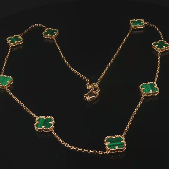 Deslumbra con este exquisito collar de oro, realzado por cabujones redondos de malaquita. Cada detalle refleja un diseño único y sofisticado. El engaste en oro complementa la belleza de la malaquita, creando una joya que captura la luz y atrae todas las miradas. Perfecto para añadir un toque de elegancia a cualquier atuendo