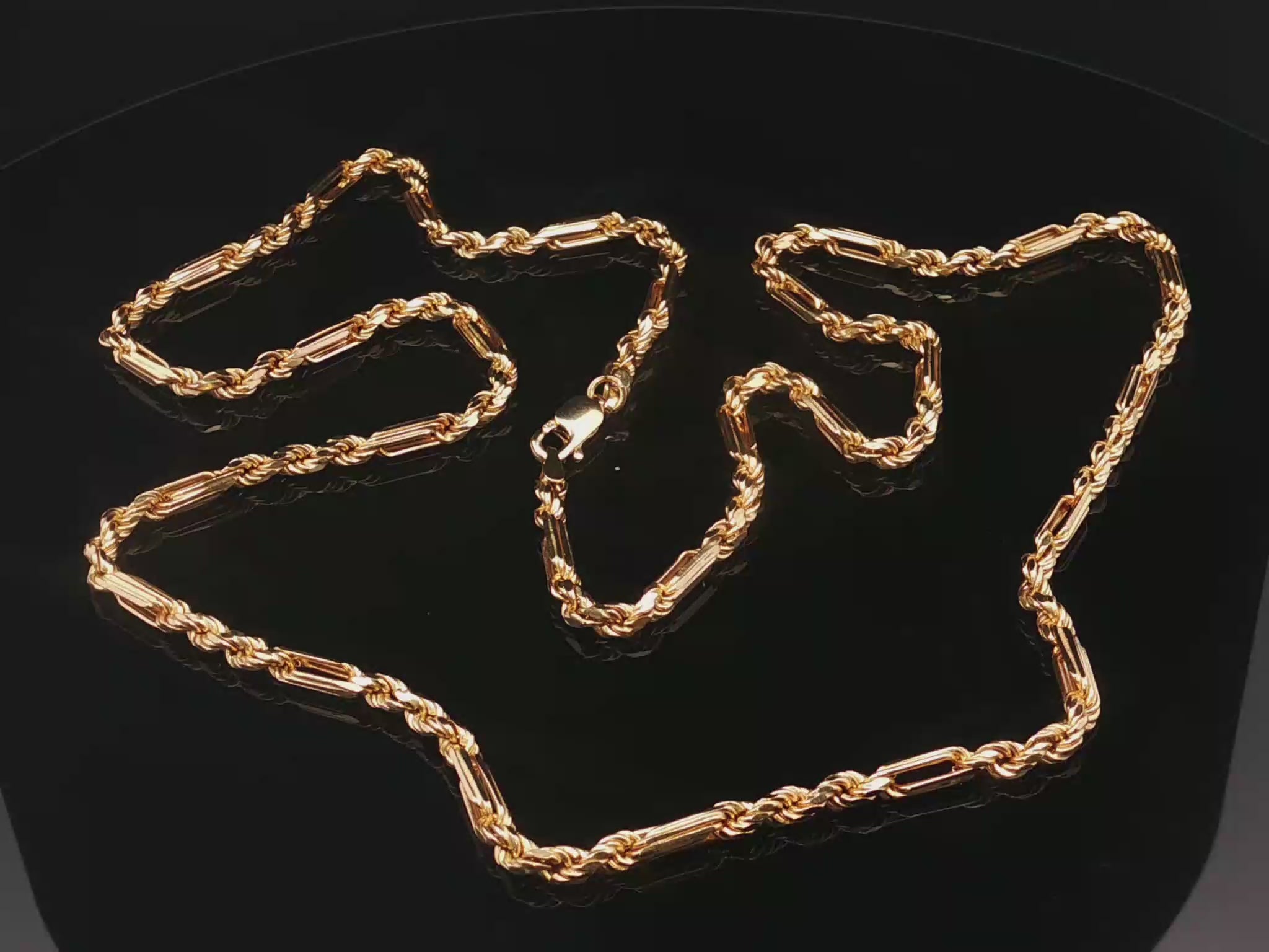 Descubre la sofisticación de esta cadena de oro amarillo, una joya clásica reinventada para el gusto moderno. Su diseño versátil y elegante la convierte en el accesorio perfecto para complementar cualquier atuendo, desde el más casual hasta el más formal. Un imprescindible en tu colección de joyas.