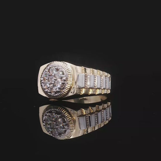 Este impresionante anillo de oro amarillo presenta un diseño cómodo con múltiples diamantes de talla brillante y forma redonda. Un accesorio lujoso que añade un toque de elegancia y distinción a cualquier atuendo. Perfecto para ocasiones especiales o para destacar en el día a día con un brillo excepcional.